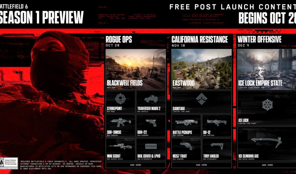 Electronic Arts e i Battlefield Studios hanno svelato la roadmap per la Stagione 1 di Battlefield 6, che inizierà poche.